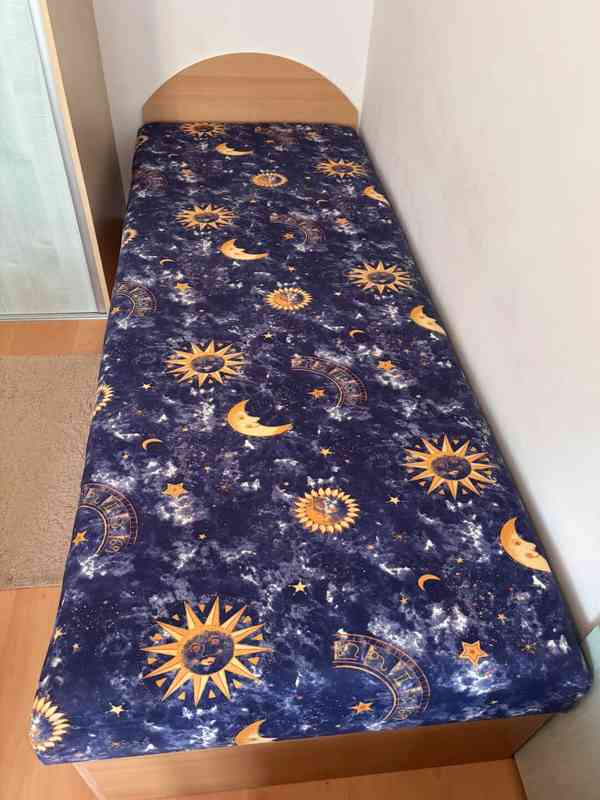 Velmi zachovalá 5-dílná sestava do dětského pokojíčku. Sestava se skládá z jedné větší šatní skříně, jedné větší skříně s poličkami, psacího stolu, menší vysoké skříně a malé nástěnné skříňky/poličky.