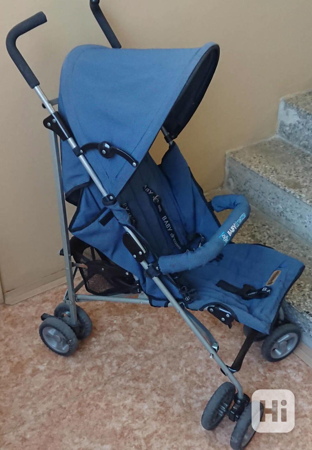 Skládací kočárek Baby Dreams (Baby Design) je pro děti cca do 15 kg. Váha 6 kg. Stahovací střecha, otvírací (či úplně odnímatelné) přední madlo, tříbodový pás, pláštěnka s průduchem, vespod síťka pro nákup.