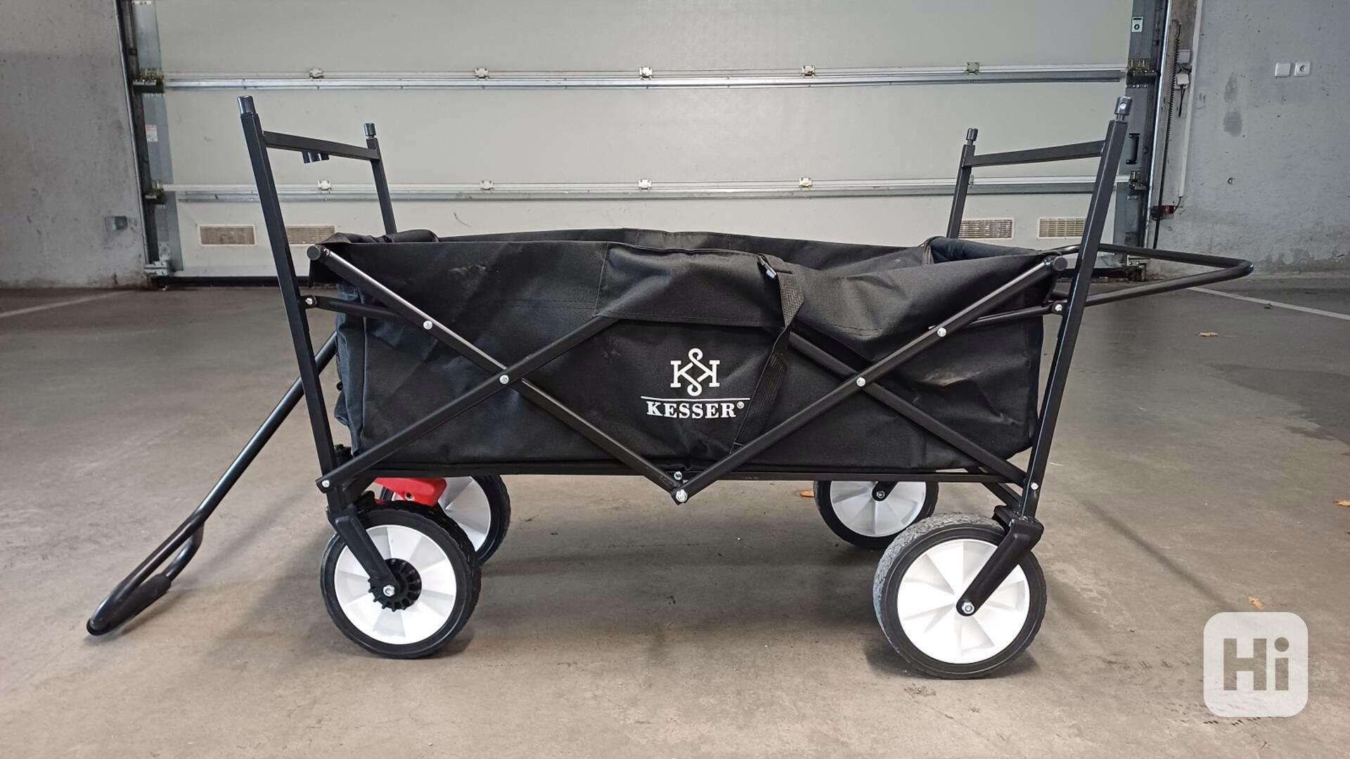 Prodám všestranný skládací ruční vozík s přídavnou taškou vzadu, který nabízí spoustu místa pro výlety s dětmi, kempování, festivaly nebo jiné volnočasové aktivity. Je minimálně použitý a ve velmi dobrém stavu. Vyznačuje se nastavitelnou středovou rukojetí s funkcí náklonu a předními koly otočným o 360°, odolný materiál a stabilní rámová konstrukce. Lze rychle sestavit a složit.