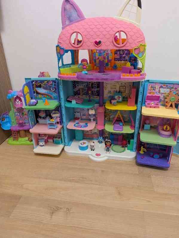 Příslušenství: 2x ručně háčkovaný medvídek 15 a 12 cm. Dále okénko, obrázek, lampa, rozkládací sedačka + přikrývka, postýlka + povlečení, skříňka na povlečení nebo stoleček a háčkovaný taburet. Nábytek je vyrobený z lepenky, polepený látkou. Vše lze složit do kufříku viz foto.