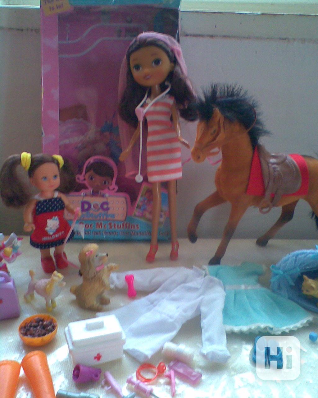 Nová panenka zvaná doktorka Plyšová s bílím pláštěm, kufříkem s lékařskými nástroji, zvířátka a různé doplnky vše viz foto