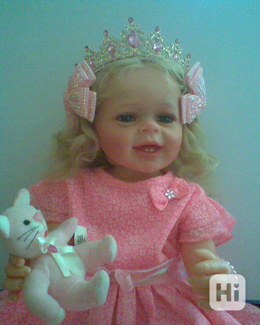 krásná nová panenka v růžovém oblečení a botičkách, má i další na převlékání, kromě toho má deku, dudlík, lahvičky, chrastítko, semišovou kočičku, sponky, gumičky, hřebínek, korunku kterou může nosit i holčička která dostane tuto nádhernou panenku,