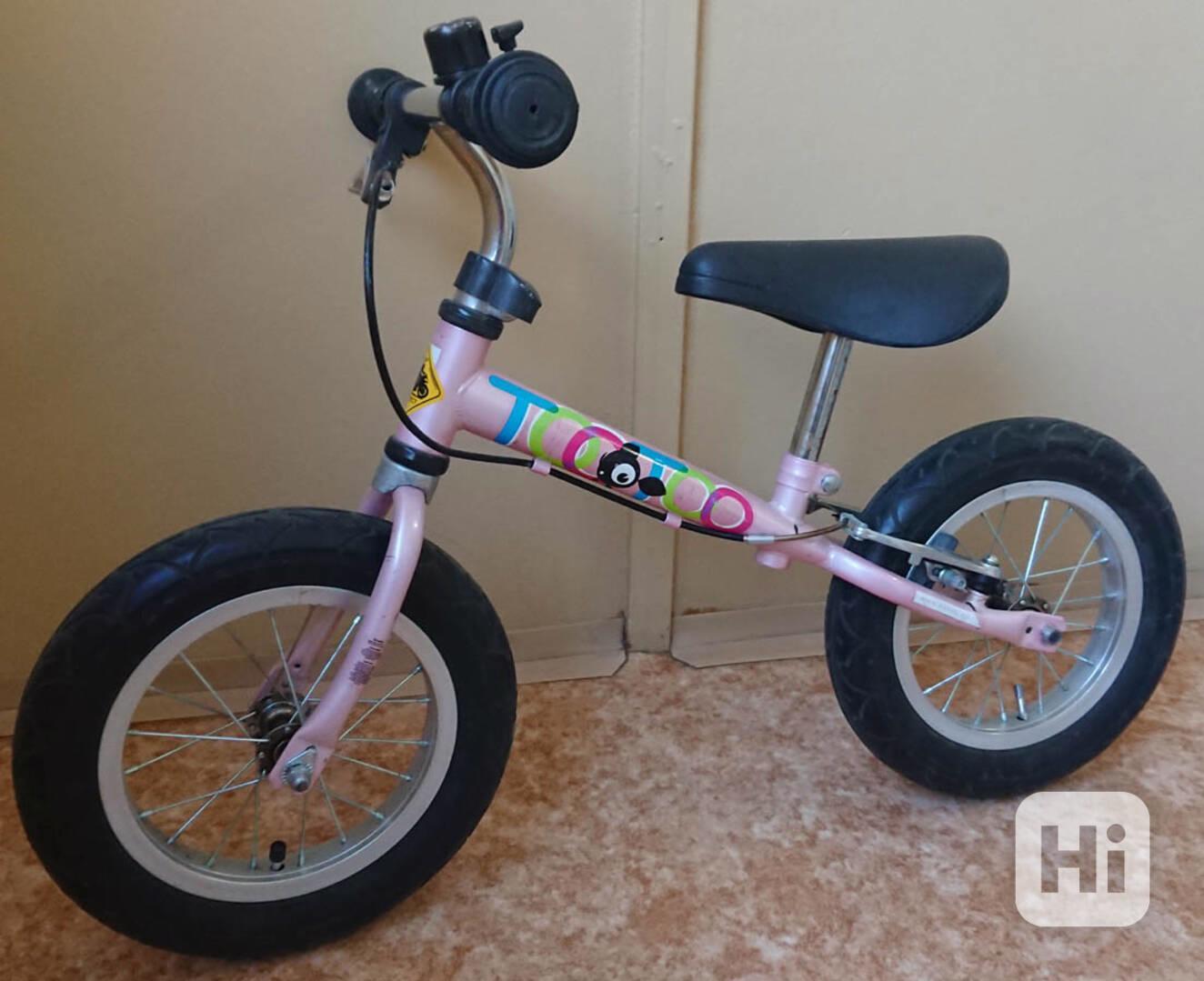 Odrážedlo TooToo pro nejmenší děti. Váha 3.7 kg, ergonomická madla s rozšířenými konci, zadní brzda, ložiskové hlavové složení s dlouhou životností a hladkým otáčením, nastavitelné sedlo 30 - 41 cm, kola 12" s nafukovacími pneumatikami, zvonek. Pro děti cca od 1.5 roku (cca od 85 cm výšky), uváděná nosnost do 50 kg. PC 3000,-.