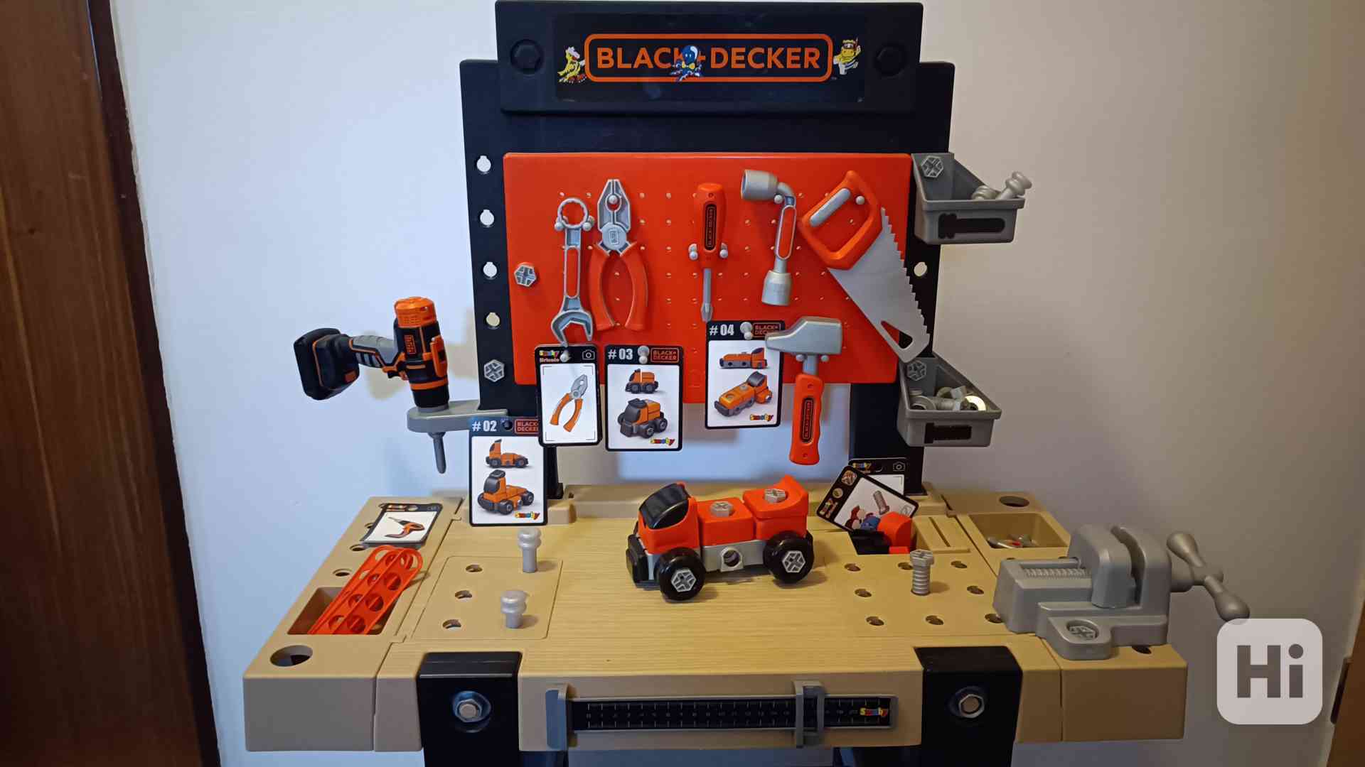 Prodám pracovní dílnu s mechanickou vrtačkou, se zatloukačkou a skládacím autíčkem, vhodnou pro děti od 3 let. Vyrobeno ve Francii z kvalitních plastů. Dílna byla u prarodičů téměř nepoužívaná. Mezitím kluk vyrostl. Krásný dárek k Vánocům.