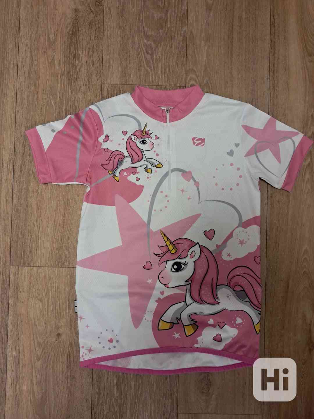Dívčí cyklistický dres jednorožec, velice pěkný stav, jako nový. Velikost 140/146.